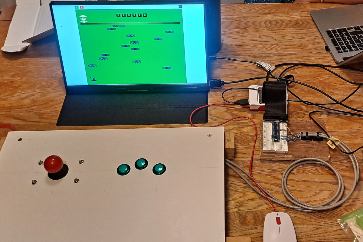 We have an experimental version of Pytch which can interface with hardware via the GPIO pins on a Raspberry Pi. In this version, you can play Invader’s Revenge with an arcade-style joystick and fire button.