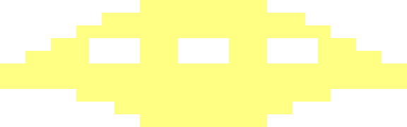 The defenders patrol in horizontal “lanes”. I tried to get a close match to the spacing of these lanes, including a gap such that the player cannot be hit at a particular vertical position. This is coupled with the graphics design in terms of the dimensions of the sprites; see below.